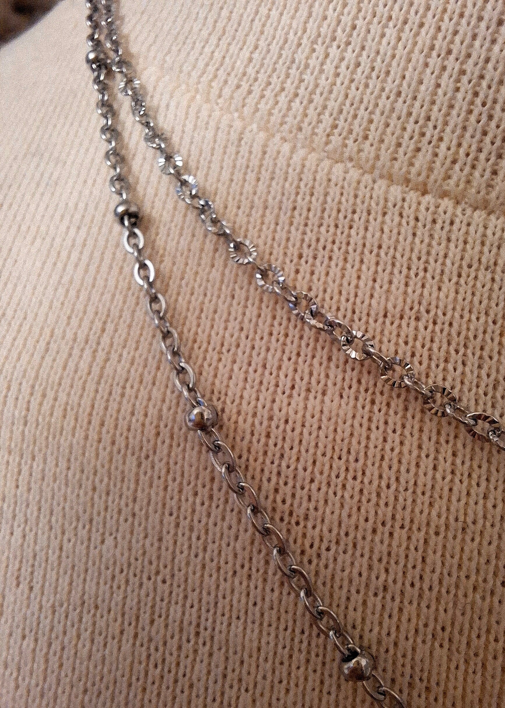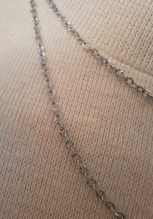 De kleine ovale schakeltjes (3 x 2 mm breed) hebben fijne inkepingen, waardoor het net mini zonnetjes zijn. Door deze fijne inkepingen valt het licht op verschillende manieren op de ketting wat het een heel stijlvol uiterlijk geeft.