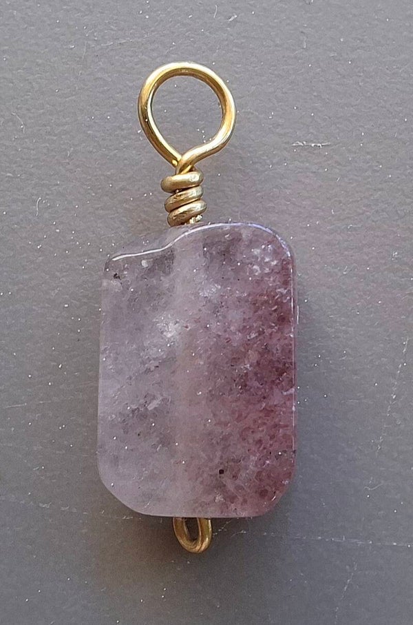Edelsteen bedeltjes in amulet vorm, aardbeikwarts hangers afgewerkt in silverplated of goldplated stainless steel.