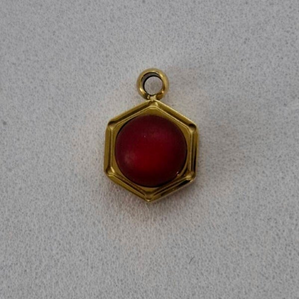 Goudkleurige geboortebloem hanger behorend bij geboortesteenketting. Gegraveerde ronde plexiglas hanger (2 cm doorsnede) aan rvs silverplated of goldplated hanger. Excl.ketting.