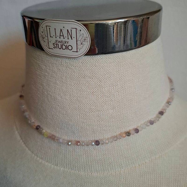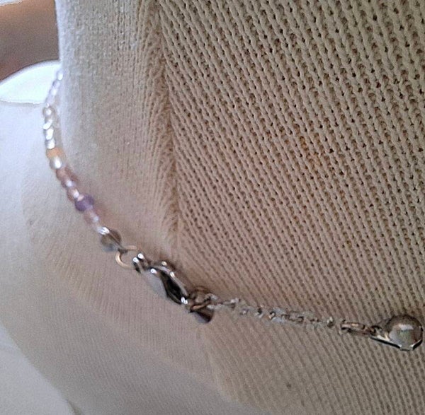 Deze mini edelsteen ametrien ketting is een subtiele en elegante accessoire, perfect voor stijlvolle vrouwen die zowel schoonheid als energie willen combineren in hun sieraden. Deze roestvrijstalen silverplated ketting is licht elastisch en bestaat uit delicate, kleine facetgeslepen 3 mm ametrien edelsteen kralen, die subtiel schitteren in een zacht voilet, lila, paarse en gele tinten, ze geven jou een sparkly gevoel. Ik heb de ametrien kralen voor deze ketting zorgvuldig geselecteerd.