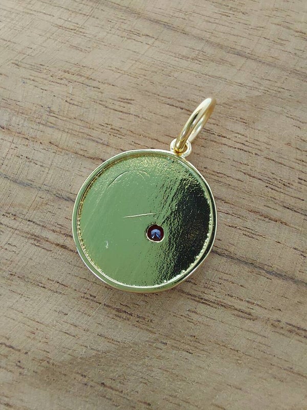 Alle bedeltjes met zon, maan en sterren zijn en blijven altijd populair en zijn goed te combineren. Dit goldplated bedeltje met een kleine zirkonia als zon en grijze achtergrond is een blijvertje!