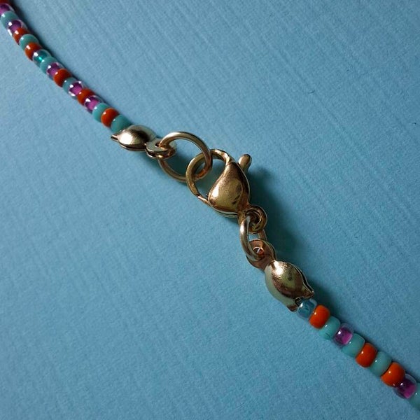 TropiColor brengt je direct in tropische sferen 🏝️. Deze handgemaakte ketting barst van de kleur en vrolijkheid, dankzij de mix van Miyuki kraaltjes die samen een speels en zomers geheel vormen. Happy orange als basis met knalroze en aquablauw, zie jij het strand al voor je?