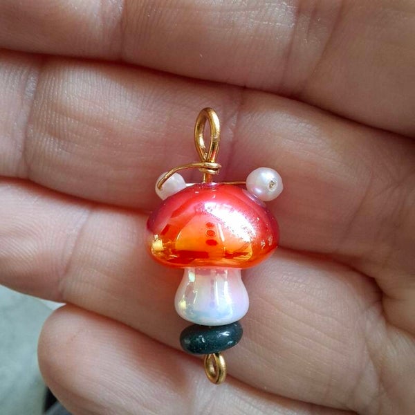 De handgemaakte Enchanted Shroom bedel is ongeveer 3 cm hoog en 1,3 cm breed.