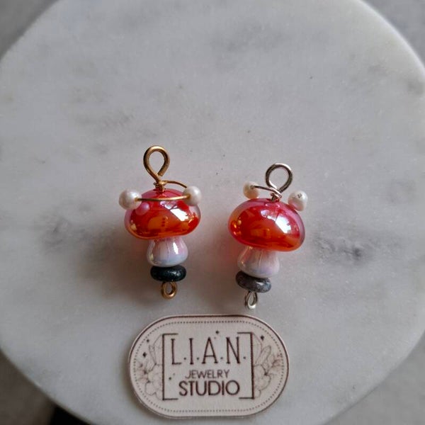 🍄+🍄 Enchanted shroom bedels kunnen ook als hangers aan oorbellen bevestigd worden. Neem even contact met me op voor de mogelijkheden. Ik heb verschillende creolen in silverplated en goldplated stainless steel op voorraad en ook oorstekertjes.