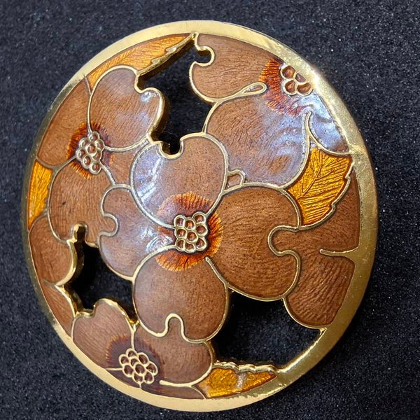 Een speciale techniek om diepte en patronen te creëren op een broche is de Cloisonne techniek. Het is een techniek die al in de 5de eeuw voor Christus werd gebruikt in de Byzantijnse architectuur, maar het meest bekend is geworden in de 14de eeuw (de Ming periode) en als techniek door Chinezen is verfijnd en eigen gemaakt. Het wordt gekenmerkt door het in vakjes verdelen van de ondergrond, destijds bijvoorbeeld de kommen en panelen, zoals je ook wel kent van glas in lood werk. Die werkwijze bij glas in lood is andersom, eerst het glas en dan het lood eromheen vouwen. Bij Cloissonné maak je met behulp van een draad/klei of iets dergelijks of een verhoging op de ondergrond, waardoor een vakjes verdeling ontstaat. In die vakjes kun je heel nauwkeurig emaille gieten en evt. bewerken. (Een Cloison is het Franse woord voor tussenschot.) Dat gaat in dunne laagjes waarna het wordt verhit en vastsmelt op de ondergrond, voordat de volgende laag en / of kleur wordt toegevoegd. Zo wordt het gehele werkstuk opgebouwd. Een soort levensecht 3D effect wordt gecreëerd door alle laagjes. Dit proces is tijdrovend zoals je begrijpt uit het hierboven geschetste beeld. In China en Japan is het gebruikelijk om de opstaande randen geheel weg te vijlen tot alleen het emaille zichtbaar blijft. Er zijn ook kunstenaars die juist de rand wel zichtbaar en 'verhoogd' houden in hun werk.