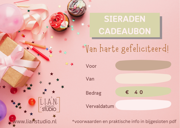 - Te besteden op alle sieraden en accessoires in LIAN Studio webshop