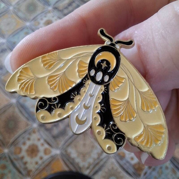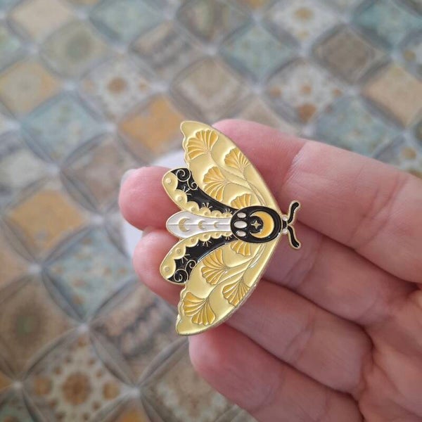 Nachtvlinder broche geel – Vlinder pin sieraden
