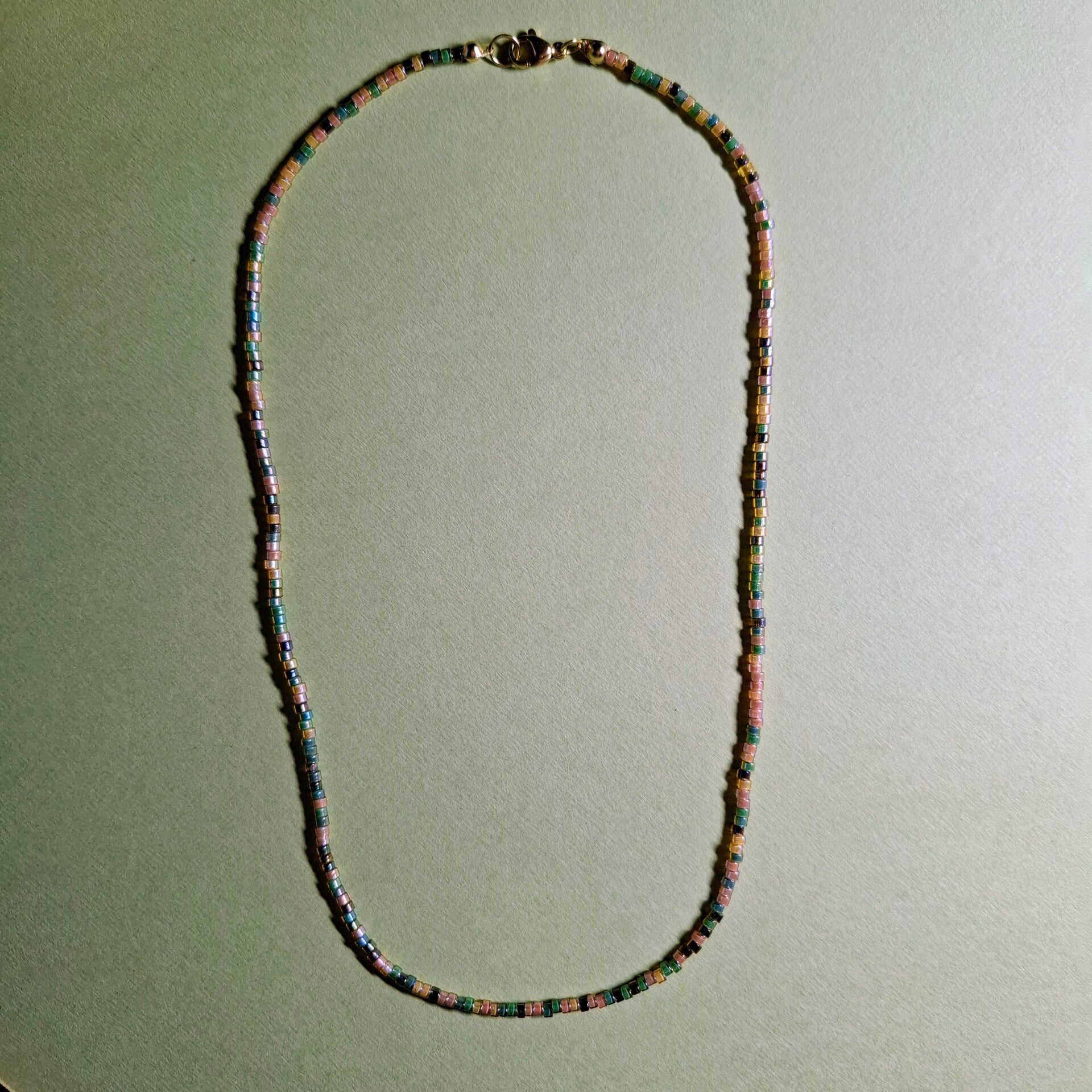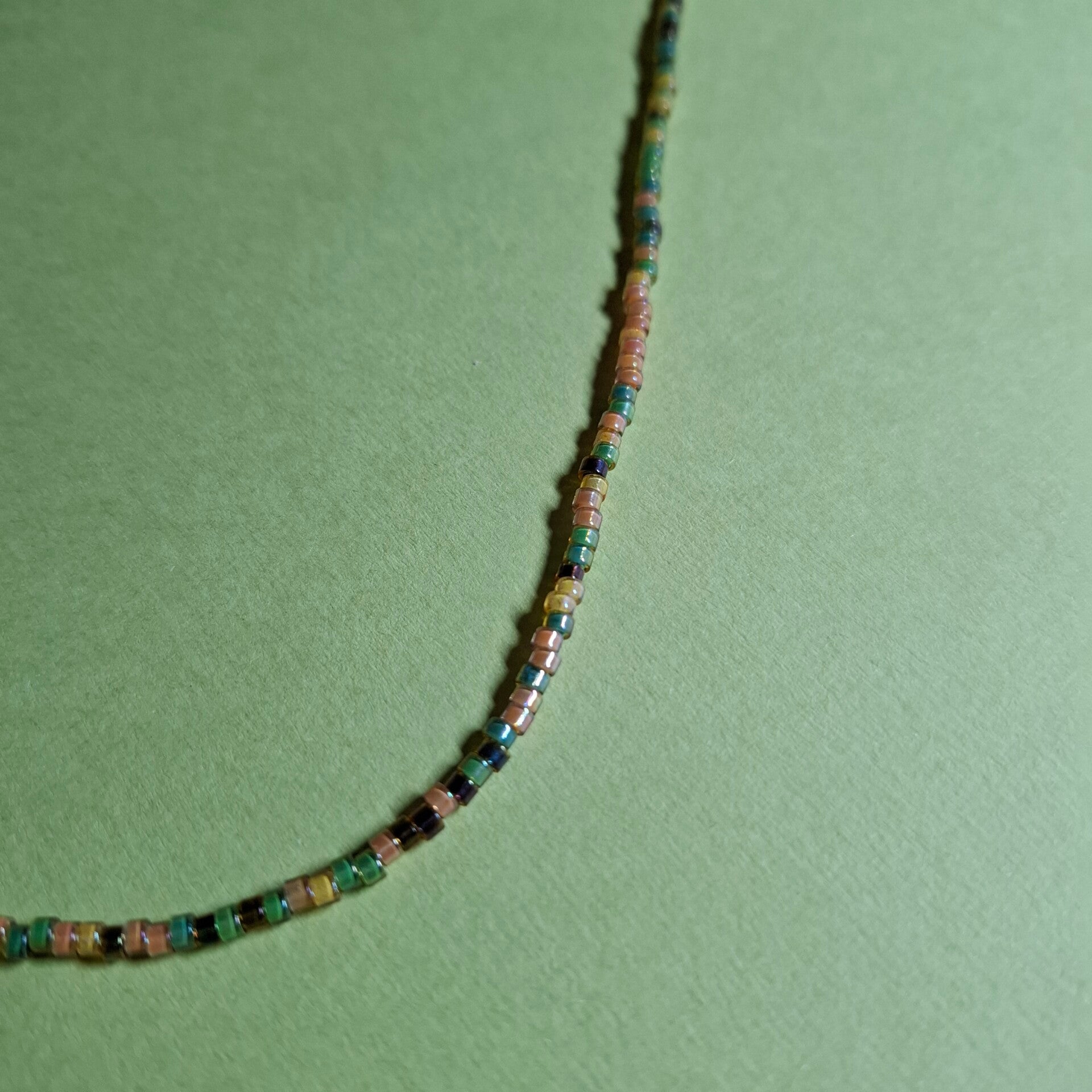 Groen, geel en goud komen samen in deze boho herfstketting Golden Harvest. Een vrolijke, handgemaakte eyecatcher voor jouw najaarsstijl.