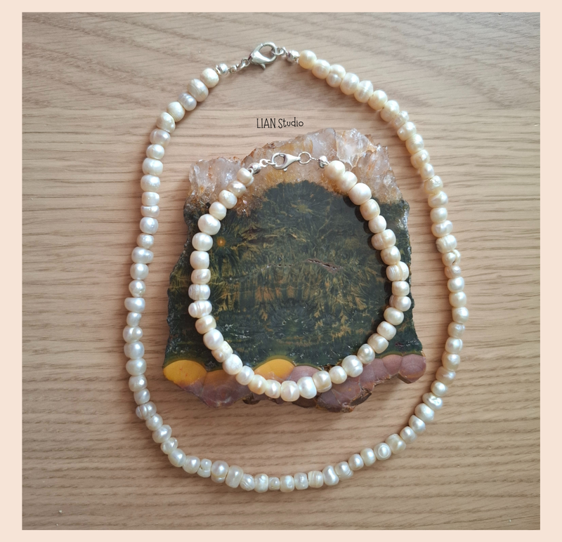 Op de foto zie je een set parel sieraden die ik herstelde voor Paulien. 1 nieuw bijpassend slotje en voor de parel armband en de parelketting nieuw superstevig elastisch draad. Deze set is weer helemaal klaar voor nieuwe avonturen!